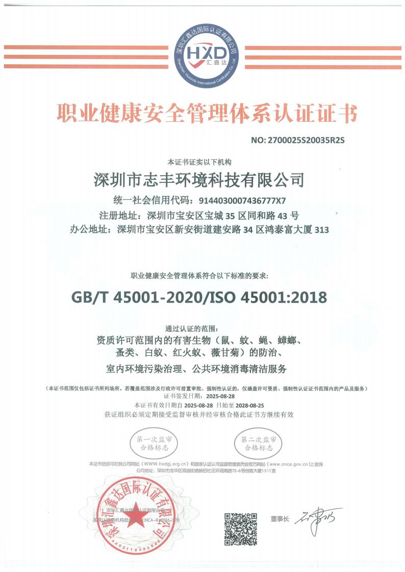 職業健康安全體系認證證書